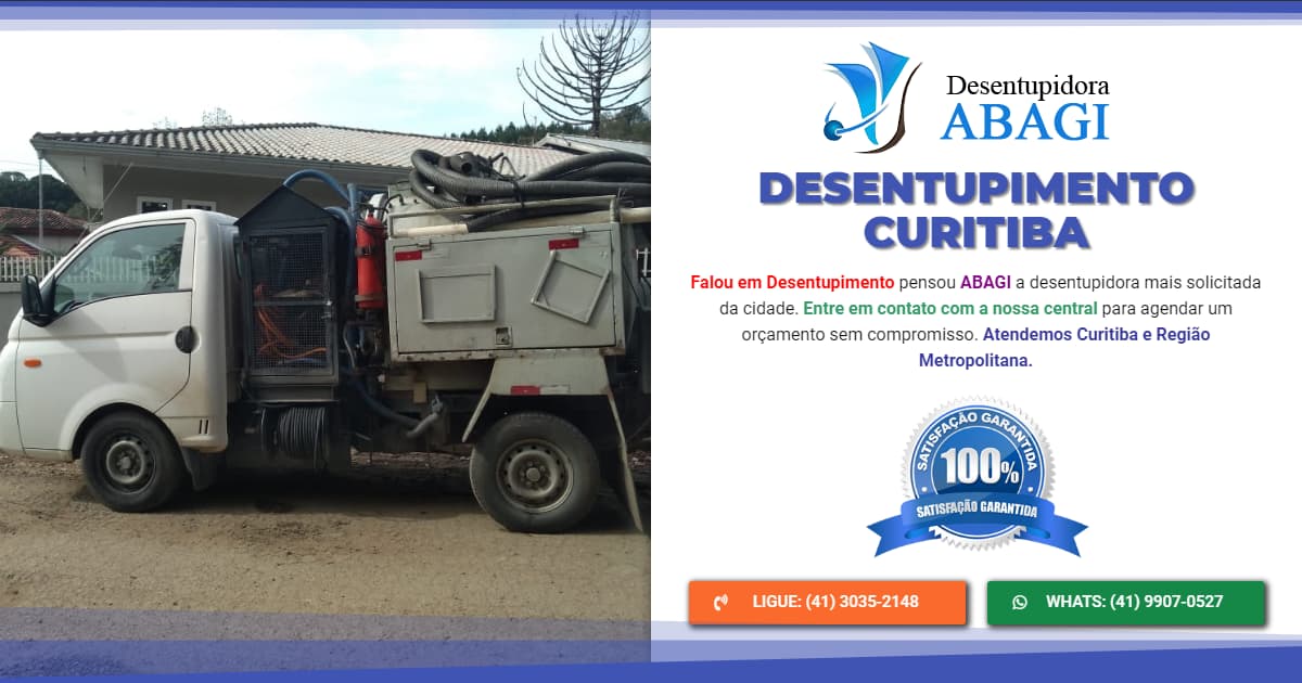 A Abagi é uma desentupidora em Curitiba 24 horas por dia disponível para atender chamados emergenciais, e oferece um pronto atendimento. Em poucos minutos uma equipe estará em seu estabelecimento realizar o desentupimento. Não importa se é mercado, restaurante ou residência, a Abagi conta com maquinário portátil e totalmente aprovado pela INMETRO.